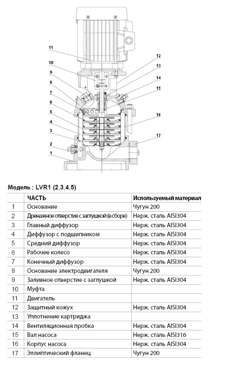 Насос LEO LVR 5-4 предназначен для перекачки невязких, негорючих, невзрывоопасных, не содержащих твердых включений и волокон жидкостей