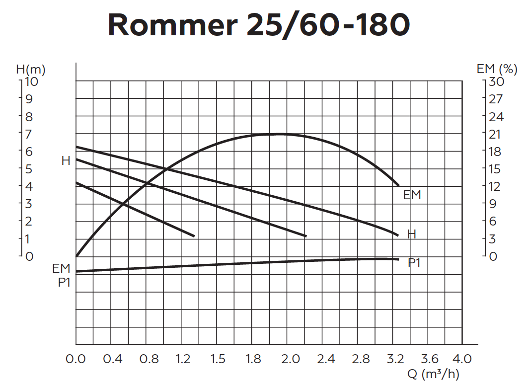 Трехскоростной циркуляционный насос ROMMER 25/60-180 с мокрым ротором, предназначен для циркуляции теплоносителя в бытовых и коммерческий системах отопления небольшой площади.